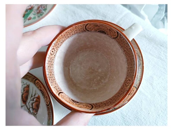 Tasses et sous-tasses Tokyo , faïence terre de fer Badonviller