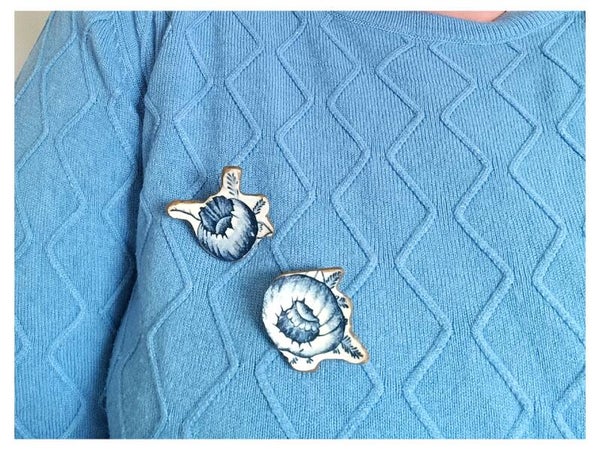 Broche Indiana , Clairefontaine, faïence bleue