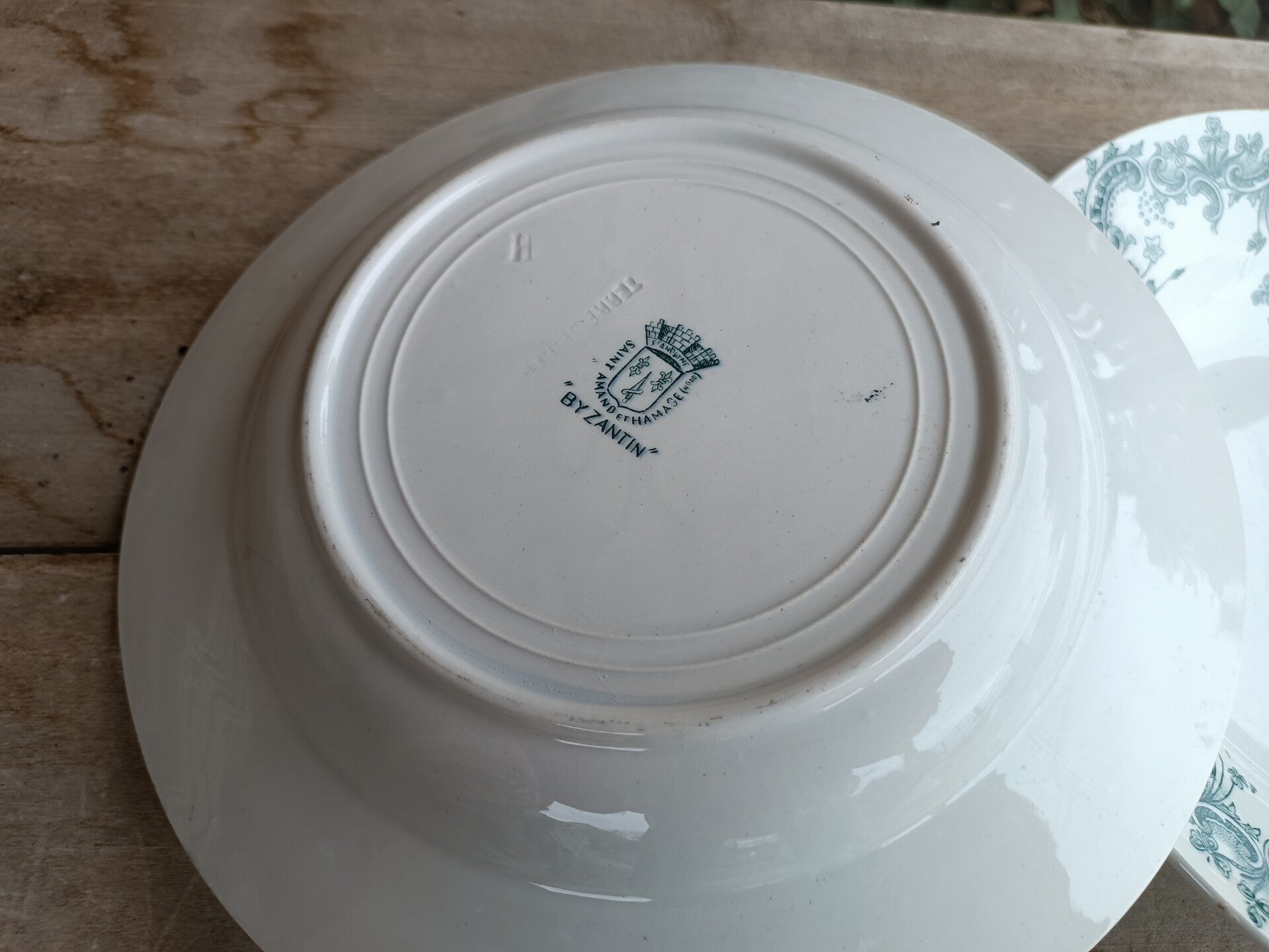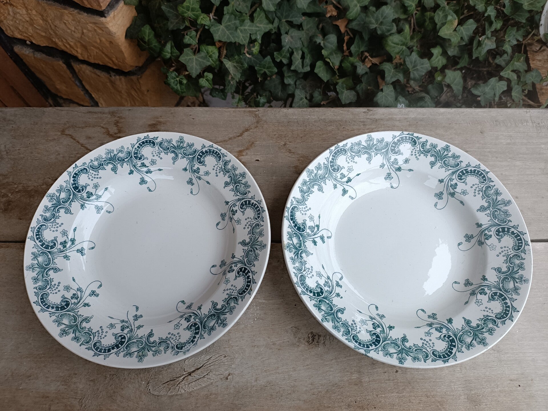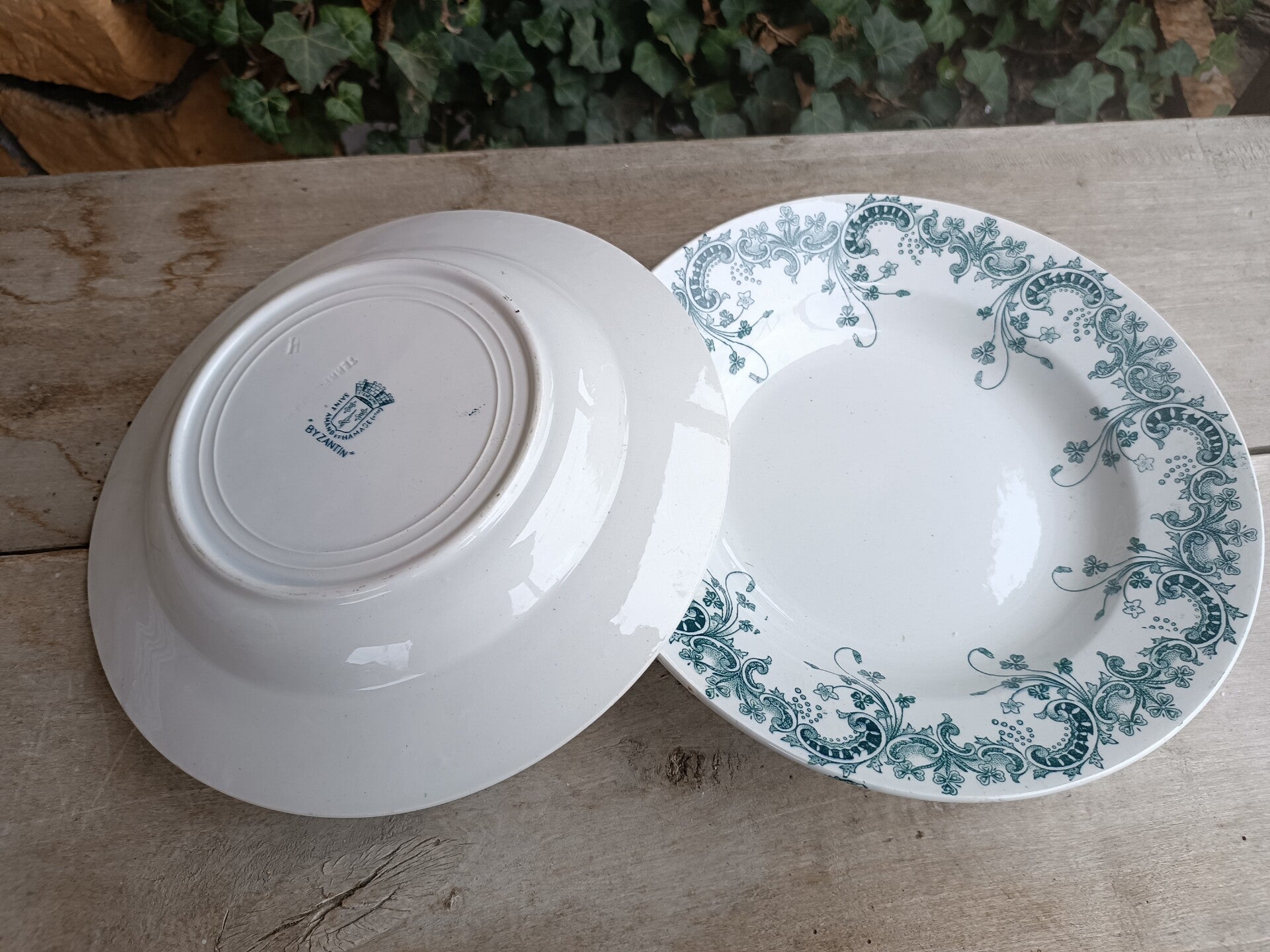 Paire d'assiettes creuses en faïence terre de fer de la manufacture française de Saint Amand Hamage modèle Byzantin.