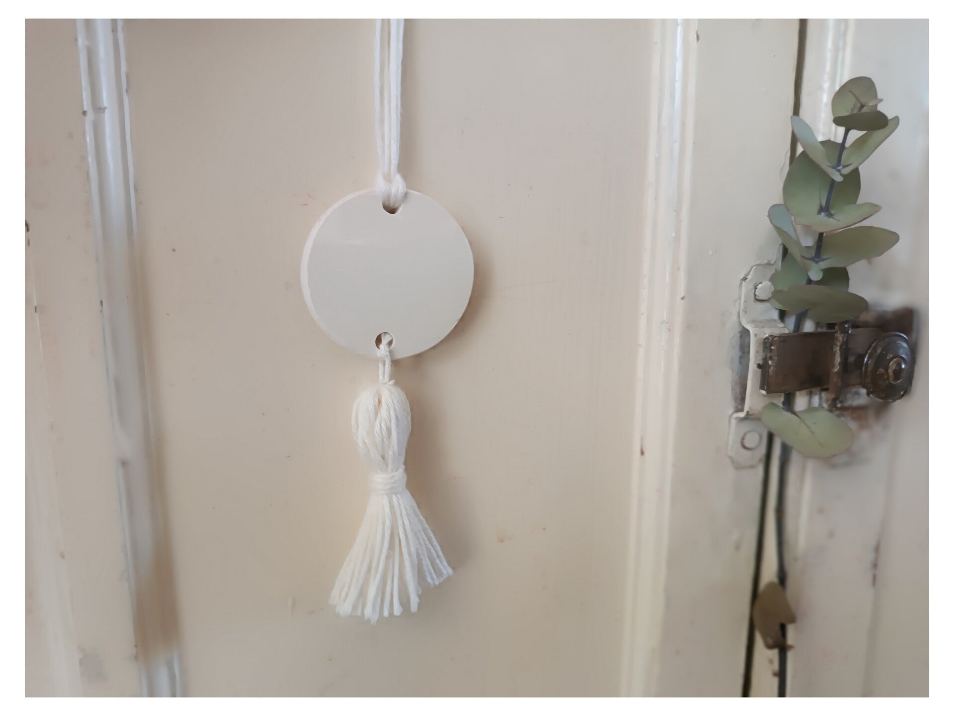 Décoration à suspendre réalisée à partir d'une assiette ancienne upcyclée en faïence de la manufacture française de Badonviller modèle Panier .