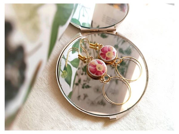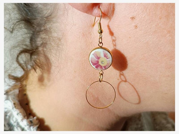 Boucles d'oreilles, Bertille , porcelaine de Limoges fleurie , laiton doré à l'or fin