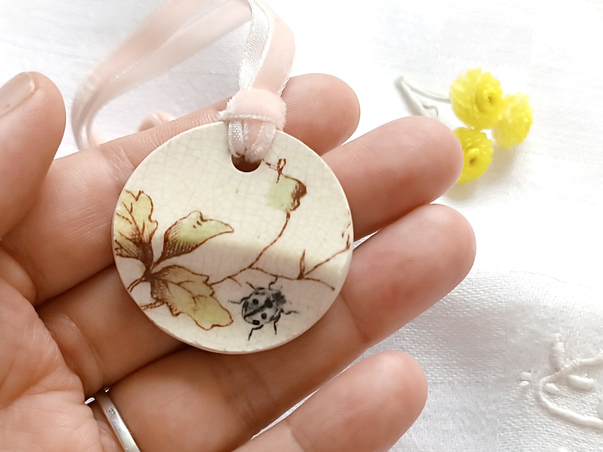 Médaillon sérigraphié jardin secret #3 faïence anglaise terre de fer