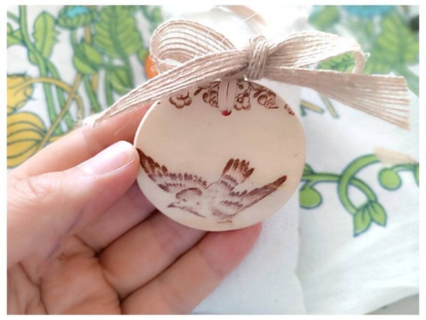 Grand médaillon , Oiseau , Faïence de Onnaing sépia, modèle Liseron