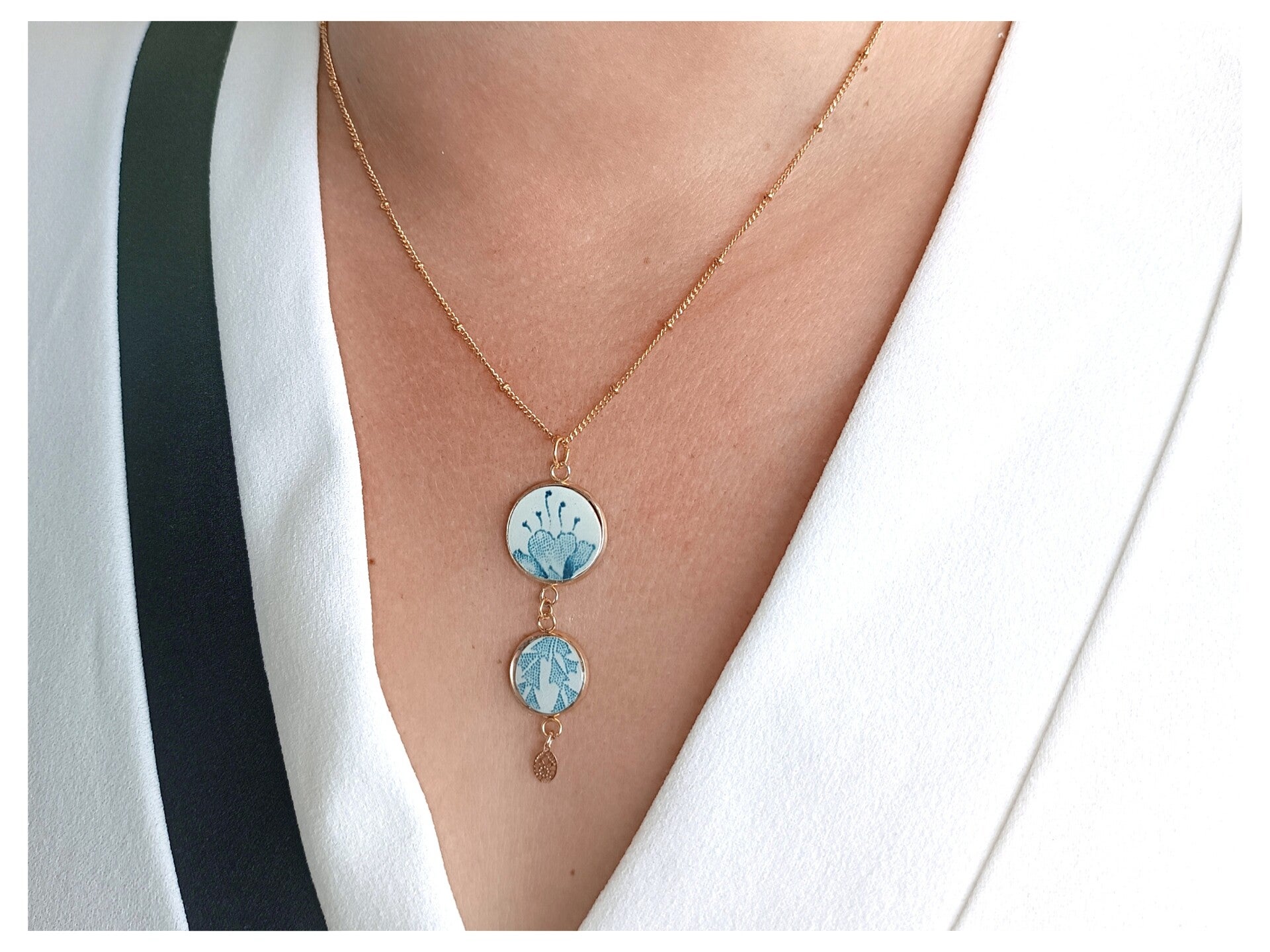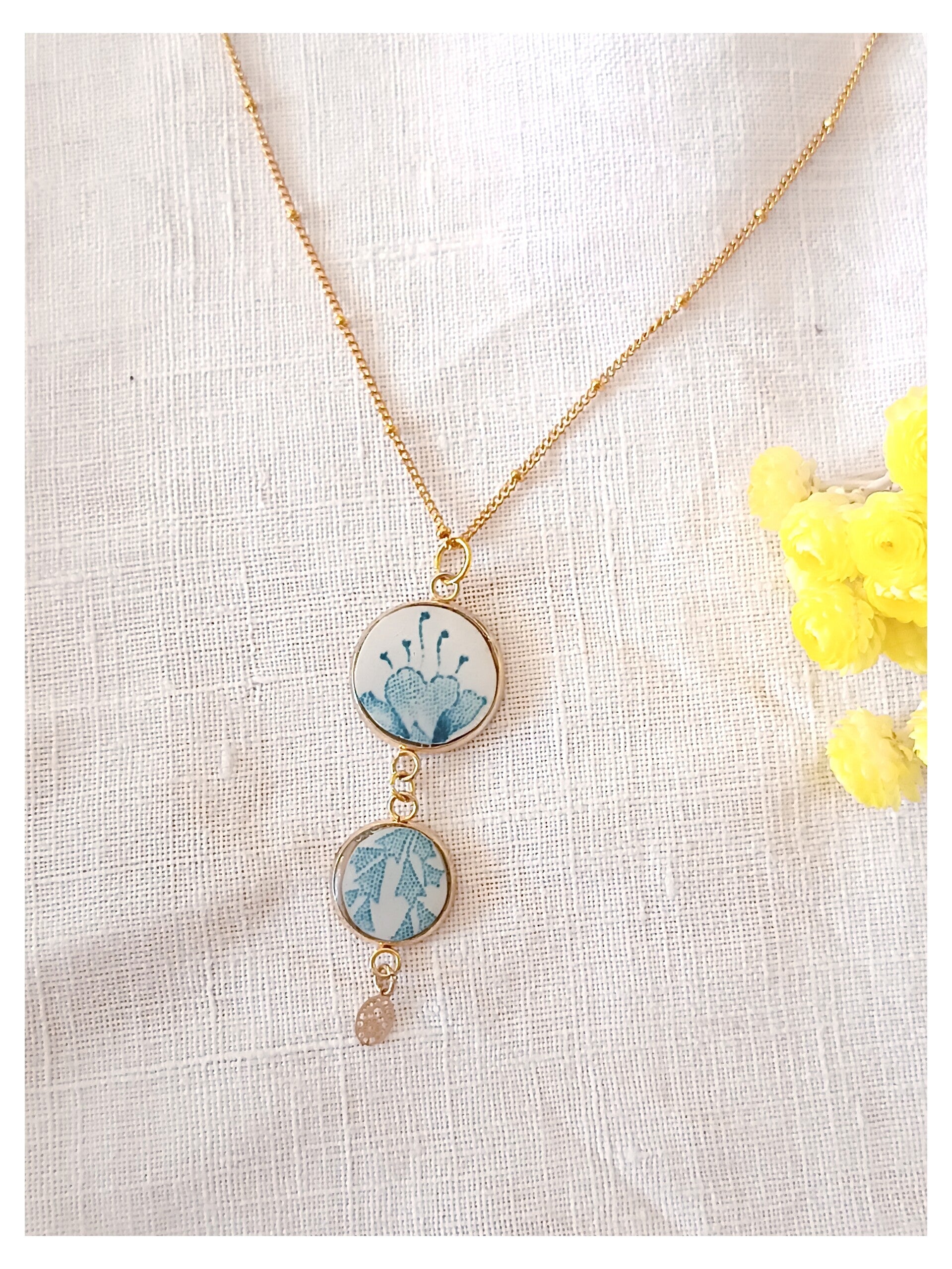 Collier Cléo , chaînette perlée doré , faïence de Sarreguemines Royat