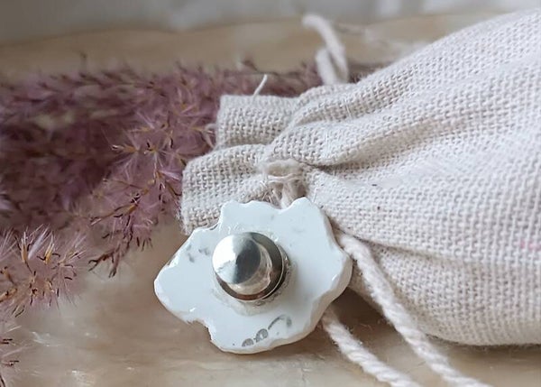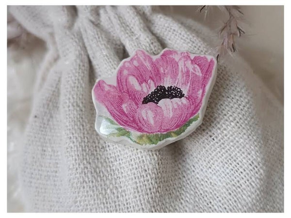 Broche anémone, faïence de digoin , rose , vaisselle ancienne recyclée