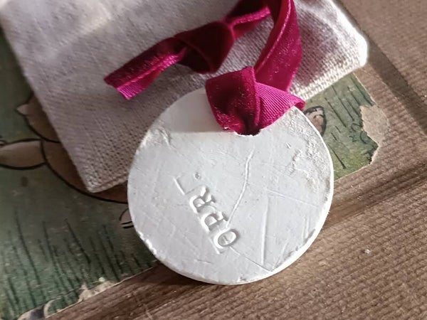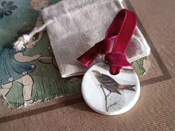 Grand médaillon en argile blanche orne d'un oiseau dans l'esprit des peintures du Douanier Rousseau.