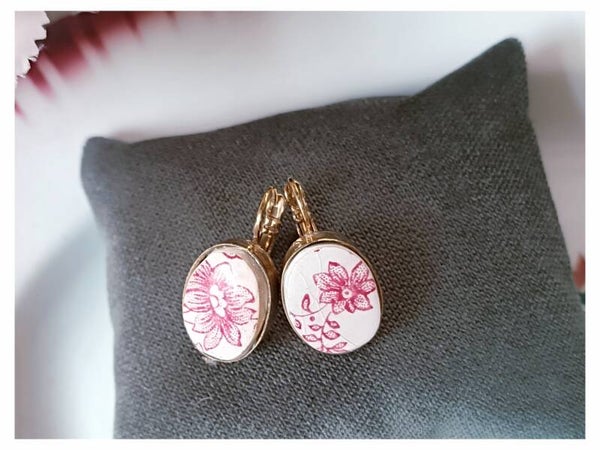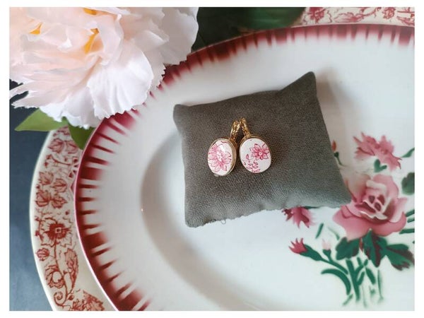 Les cabochons ont été créé à partir d'un carreau en faïence de Gien rose de la fin du XIXème siècle.