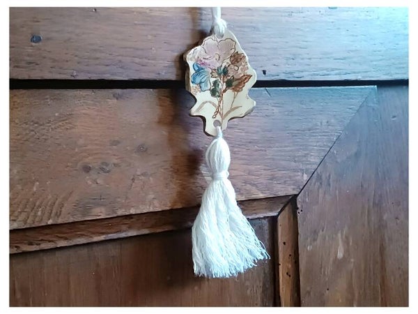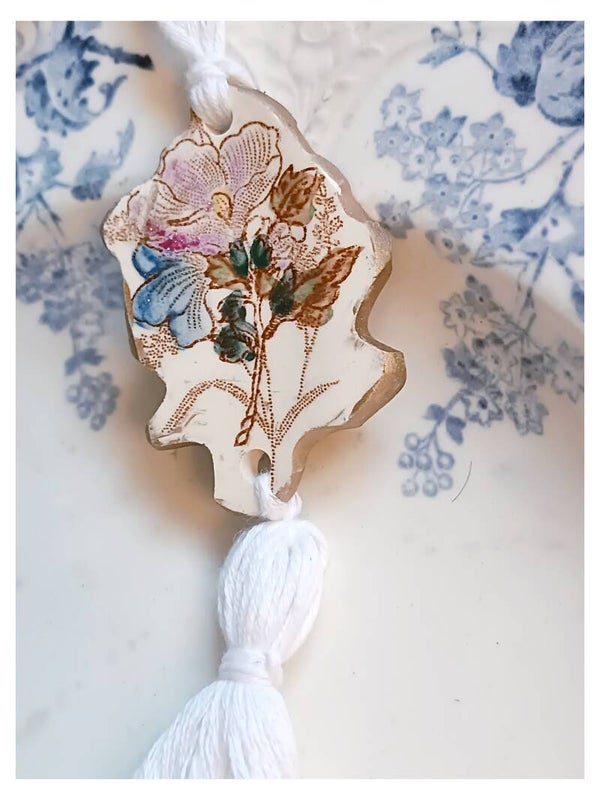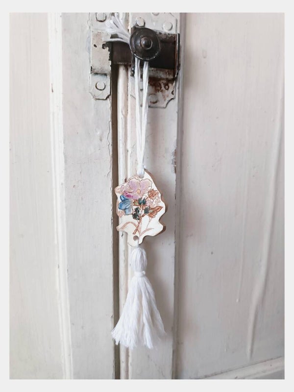 Pampille décorative, Iris polychrome, faïence HB et Cie Choisy le Roi recyclée