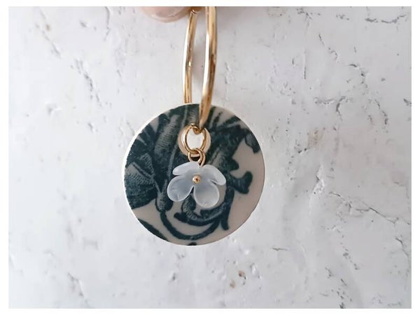Créoles dorées, Anastasia , faïence terre de fer Clairefontaine bleu profond