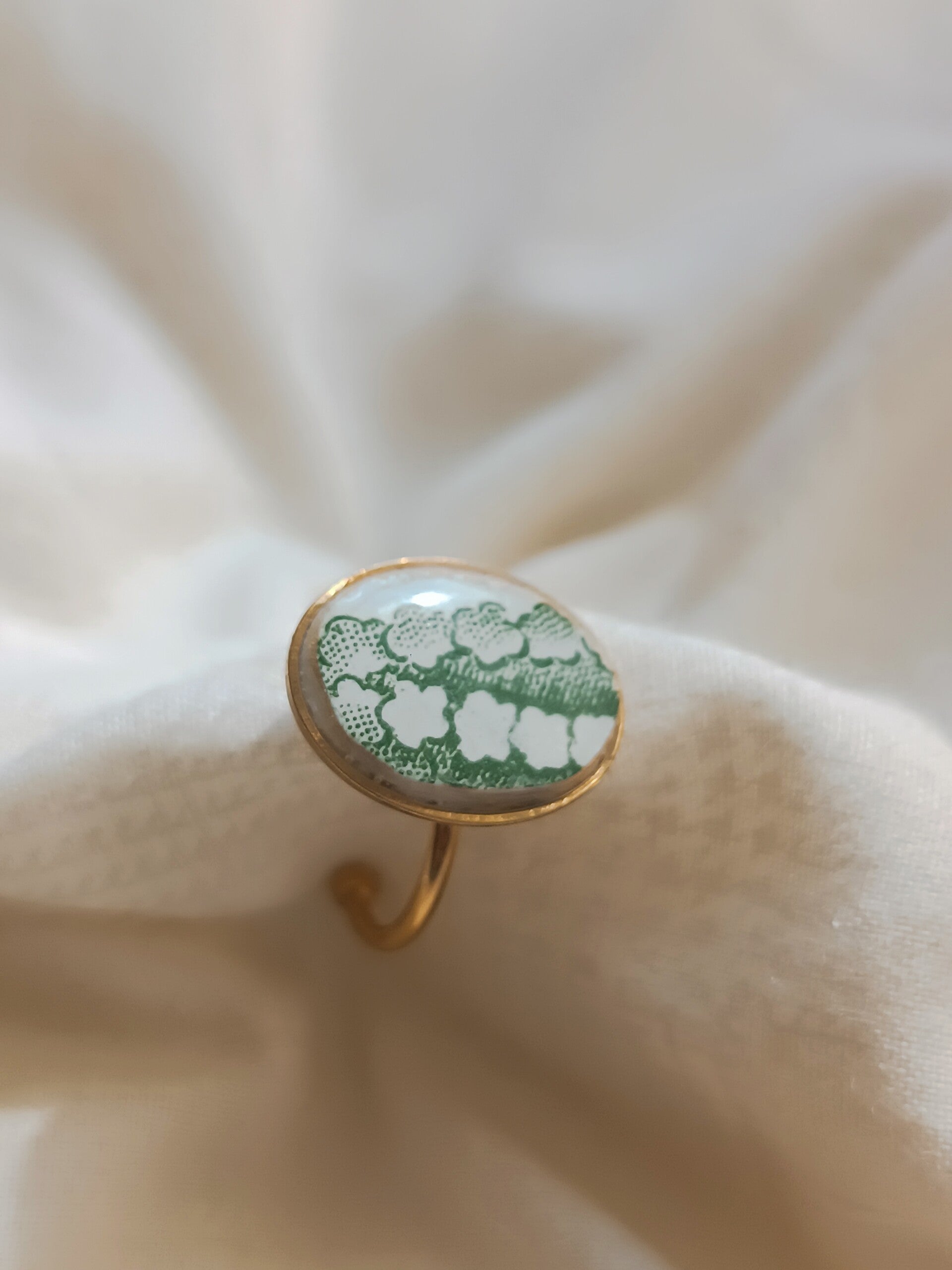 Bague Cora , faïence de Saint Amand, Modern style, art nouveau, doré