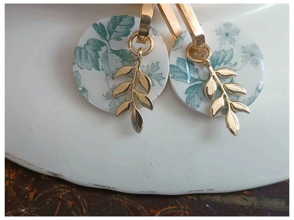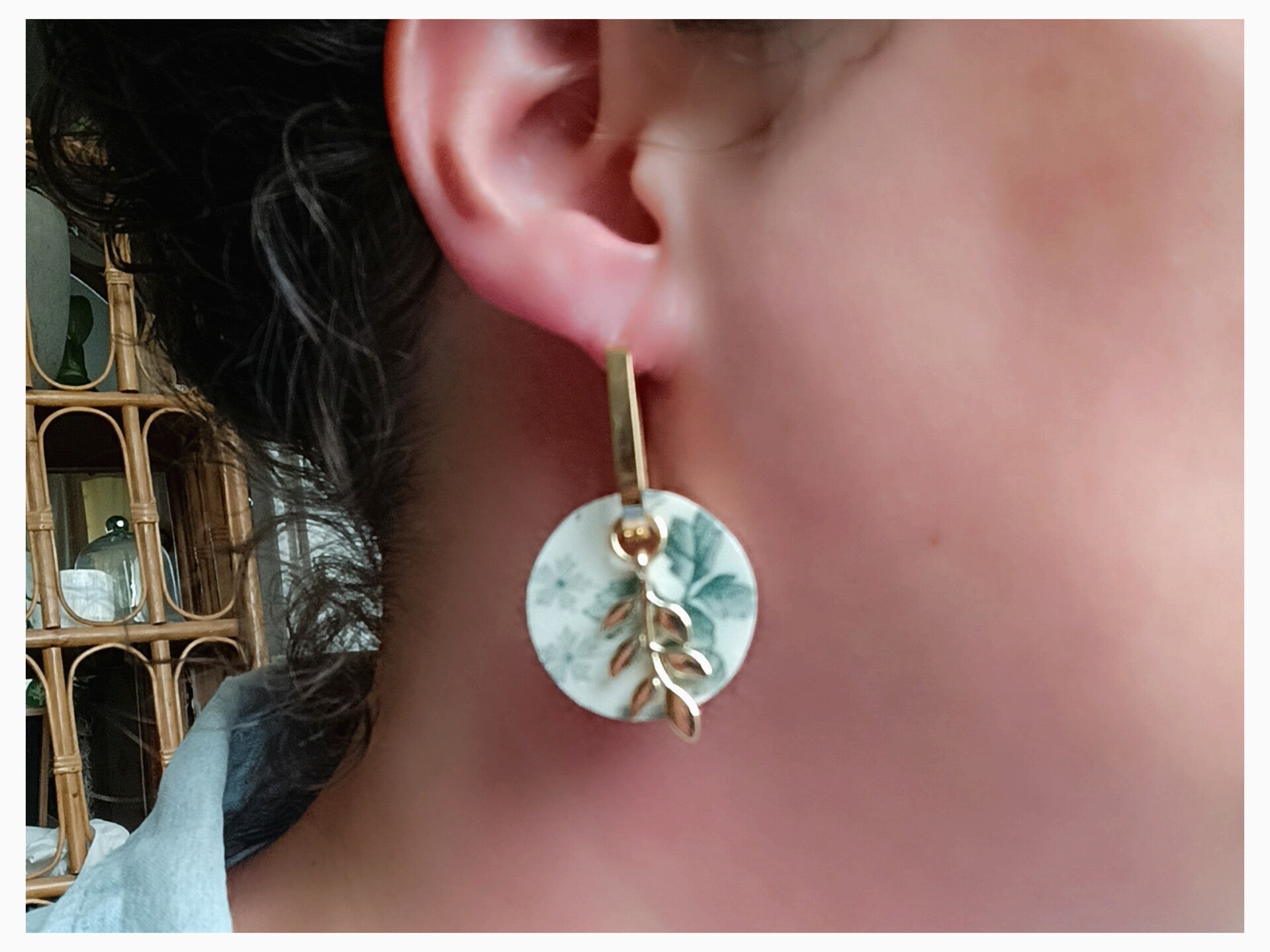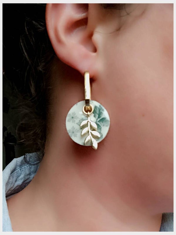 Boucles d'oreilles créoles, Artémis, faïence de Lunéville , terre de fer recyclée verte