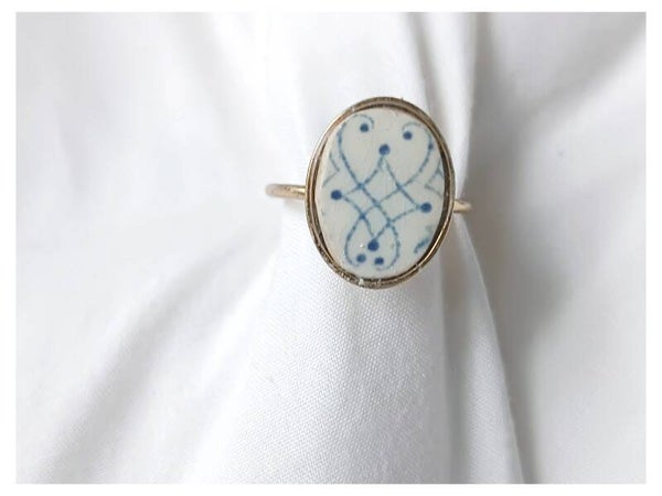 Bague Ingrid , faïence terre de fer recyclée, Lunéville Bleue , dorée