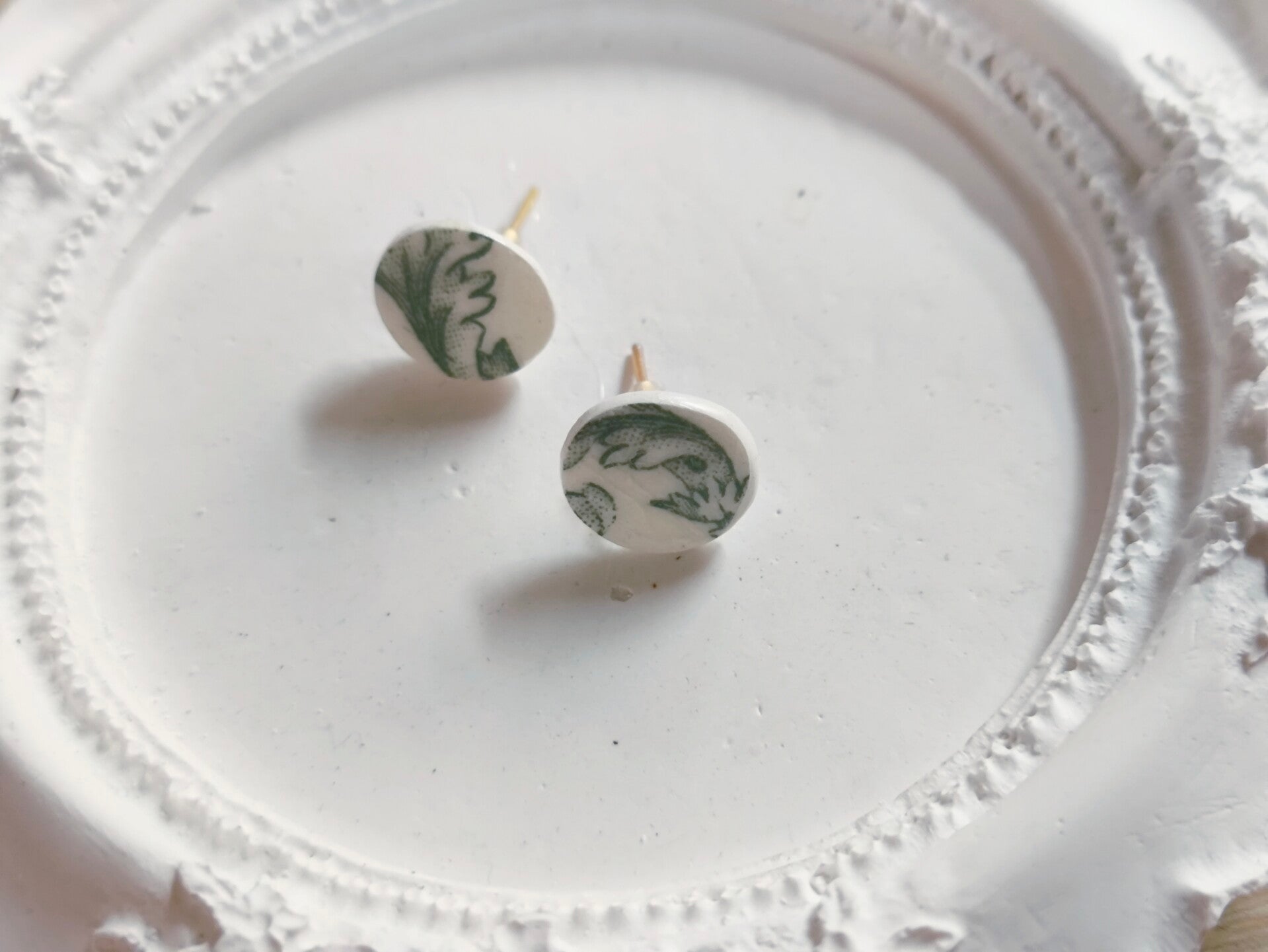 Élégantes et légères, nos puces d'oreilles sont réalisées dans des fragments de vaisselle ancienne et amincit pour apporter un confort optimal .