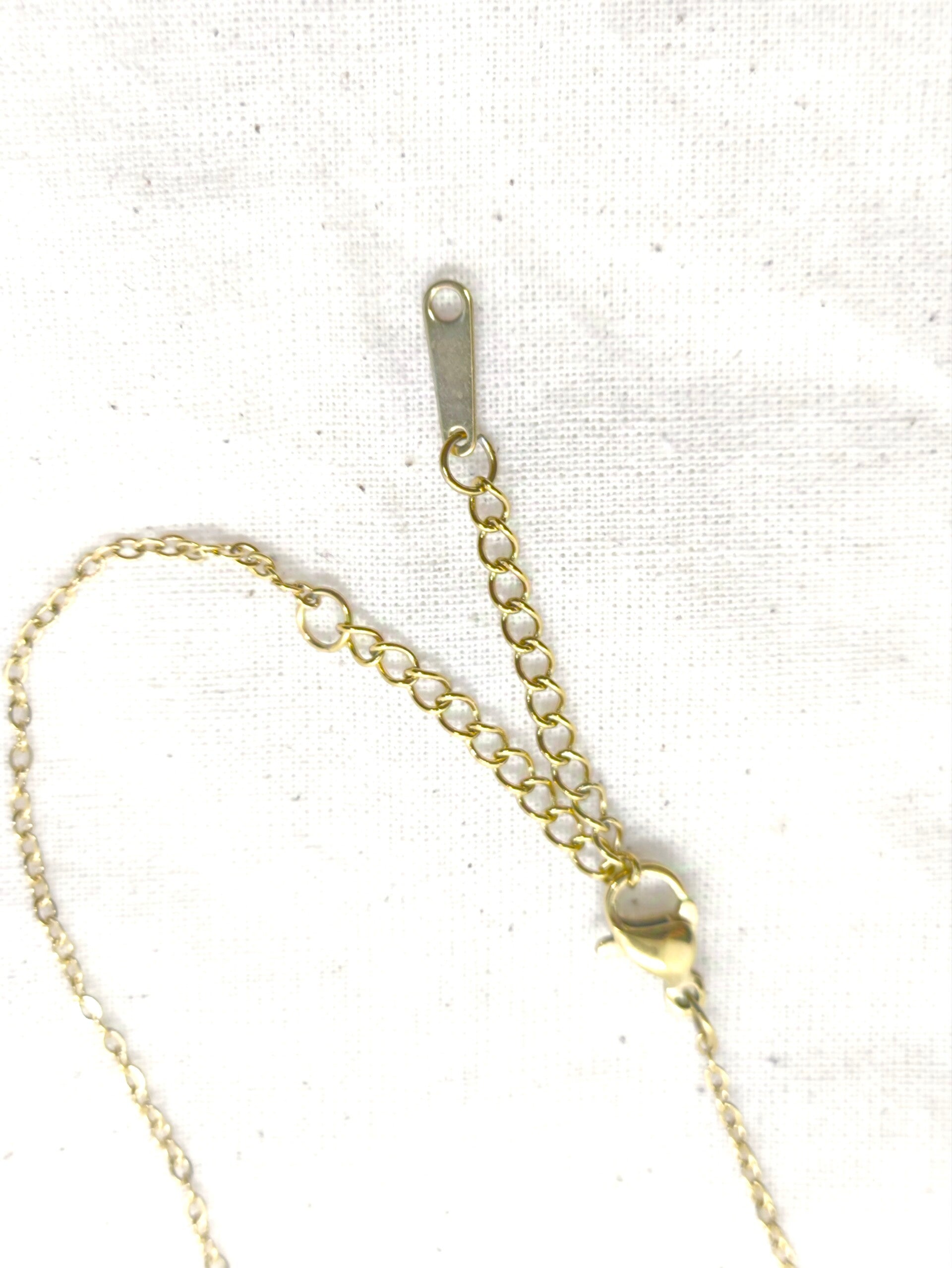 Collier Dalila , Faïence de anglaise liberty recyclée bleue, cristal rose , acier inoxydable doré