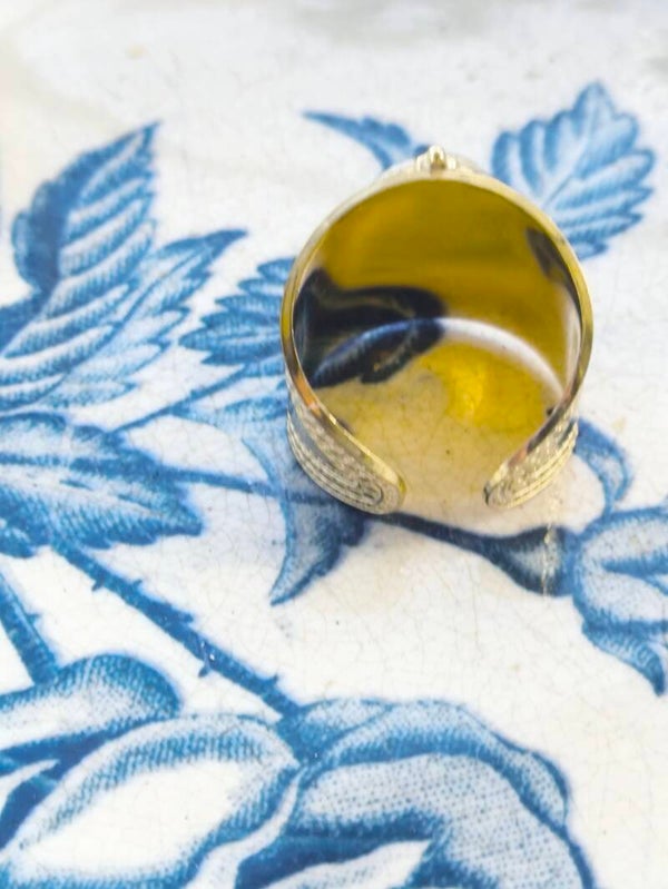 Bague Susanne – Faïence ancienne de Sarreguemines | Monture dorée à l’or fin