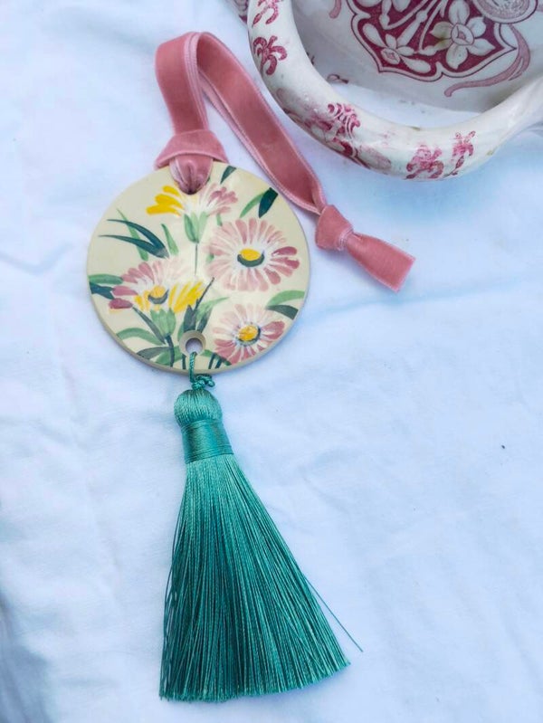 Pampille à suspendre| faïence de Gien recyclée| bouquet fleuri peint main