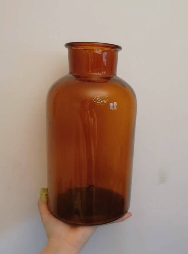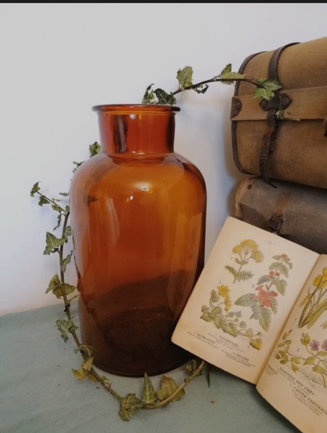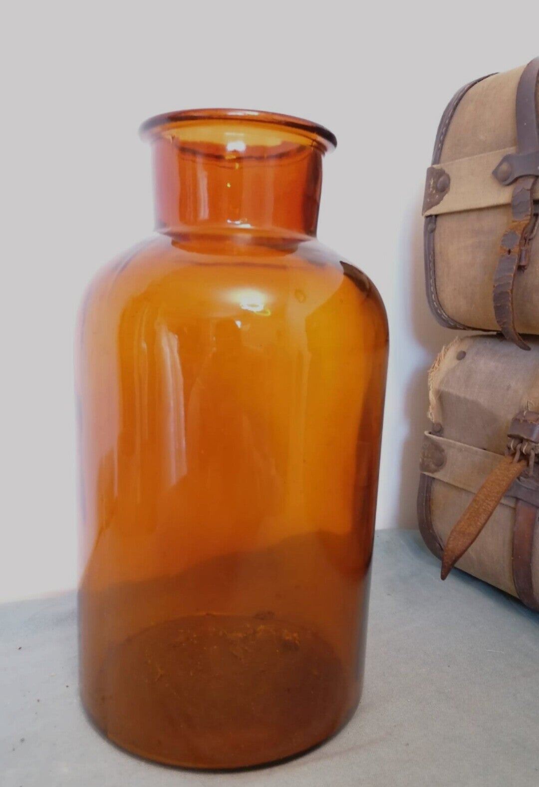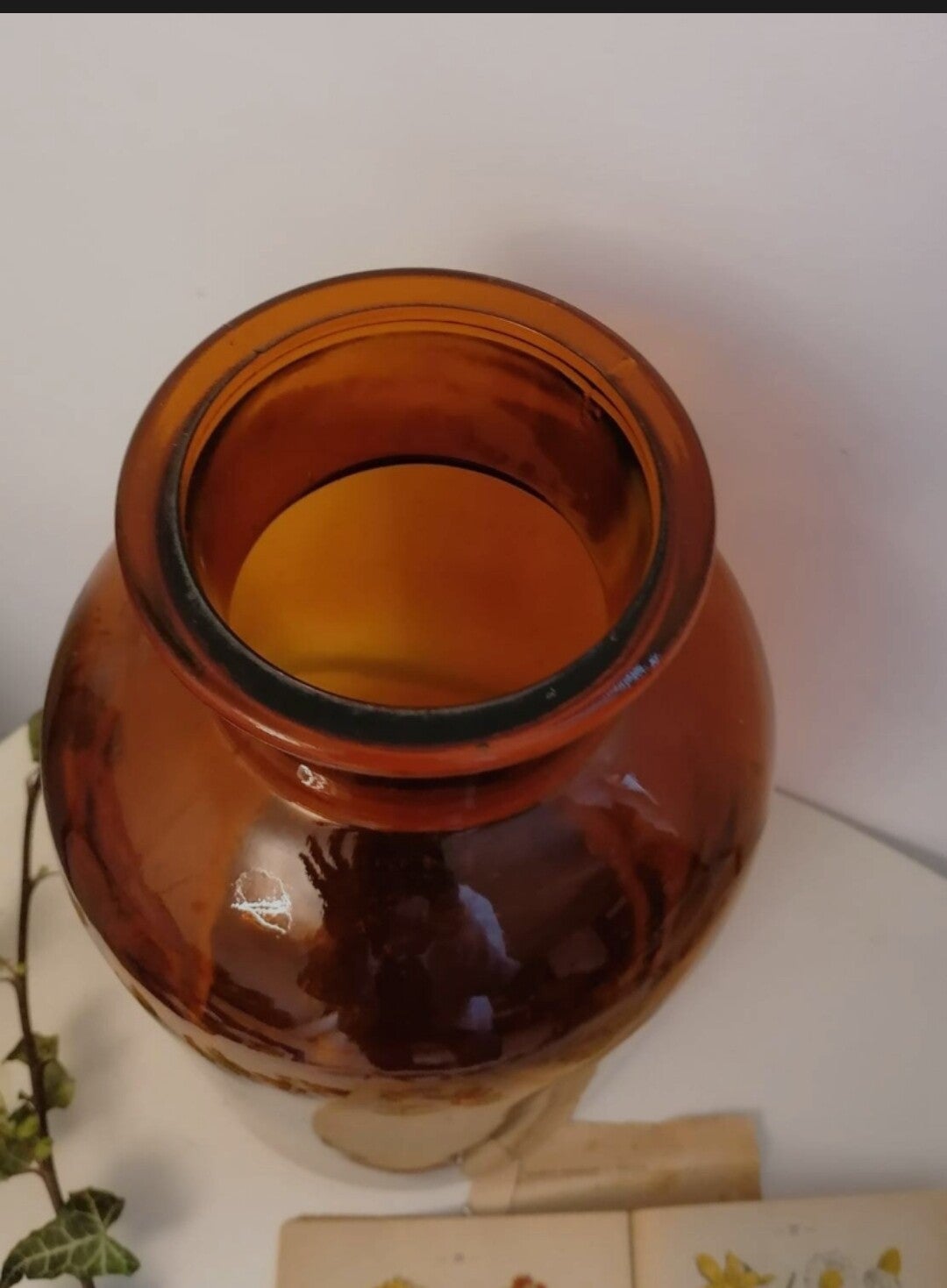 Grand pot d'apothicaire 5 litres , verre ambré vintage