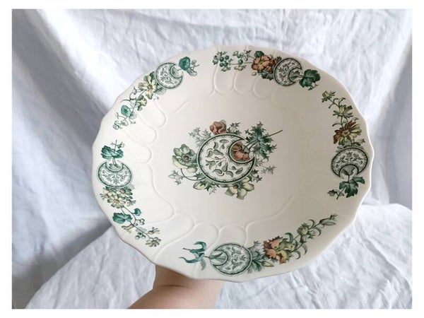 Compotier art nouveau , faïence terre de fer polychrome fleurie