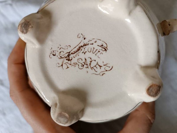 Rare crémier en faïence terre de fer polychrome de la manufacture de Clairefontaine modèle Saxe.