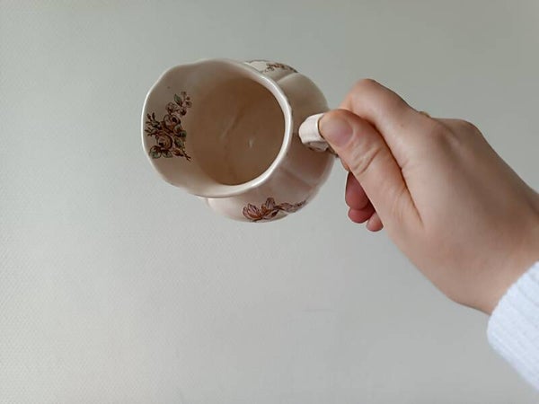 Grand crémier , pot à lait en faïence terre de fer polychrome modèle Saxe , faïence de Clairefontaine