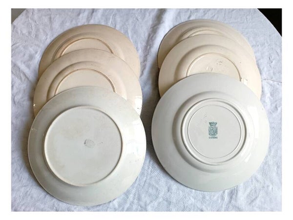 Suite de six assiettes plates en faïence terre de fer composé de :