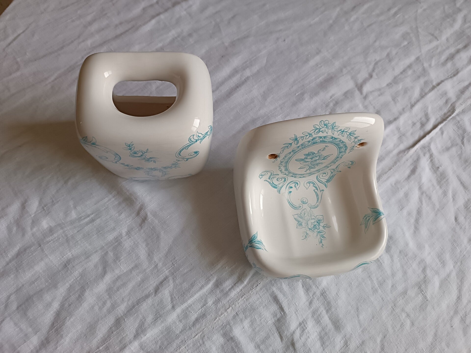 Ensemble de porte-savon et porte brosse à dents murale en porcelaine de Paris .
