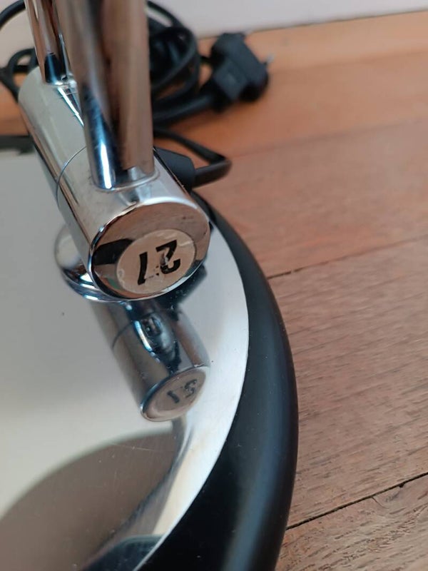 Grande lampe de bureau à double ampoules . Forme en cuillère avec un large déflecteur.